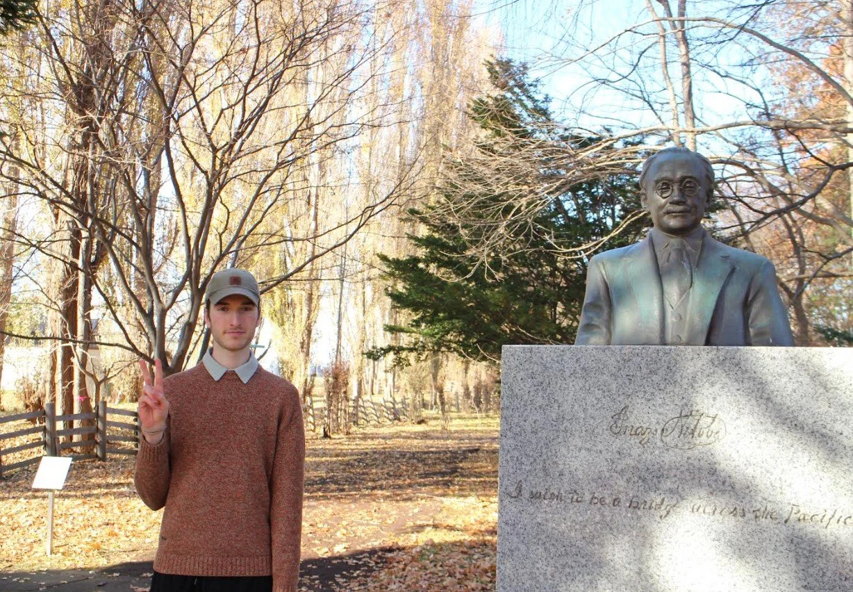 Pictured above: Avery Rhoads '18 next to a statue of Nitobe Inazo, a central figure at Hokkaido University and the most prominent Japanese Quaker.